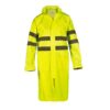 Сигнальный дождевик со светоотражающими лентами для безопасной работы в дождь и при плохой видимости. ПУ-покрытие и проклеенные швы защищают от воды и грязи, а вентиляция на спине и эластичные манжеты повышают комфорт в течение смены.